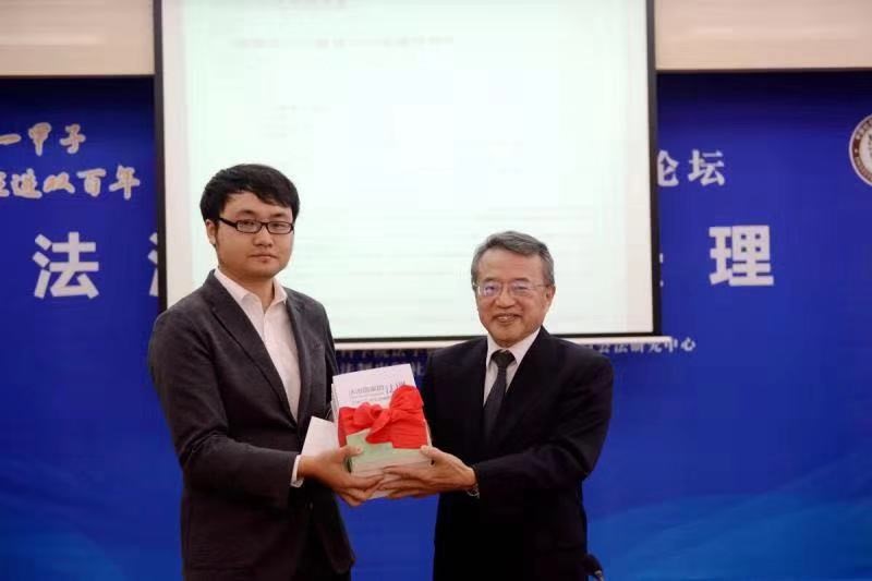 该论坛每年举办一次,由中日双方隔年交互主办。现已成为中日两国公法学界相互交流的影响最大、规格最高之平台。日方发起人为日本著名宪法学者户波江二(早稻田大学名誉教授),为褒奖他长年以来殚精竭虑对两国学术交流所做的巨大贡献,此次论坛同时开辟“古稀文集献呈仪式”这一特殊环节,以庆贺教授古稀寿辰和在早稻田大学的荣休之喜。论坛主题“法治国家的法理”,则正是中方学者们为其祝寿而出版的一部论文集的书名——《法治国家的法理(户波江二先生古稀祝贺论文集)》(莫纪宏、牟宪魁主编,中国民主法制出版社2018年版)。黄色导航 洪骥老师在特殊环节得到户波教授亲自赠书,并有论文收录在该文集中。