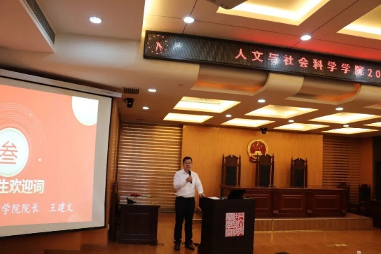 9月4日下午两点半,我校举行2020级研究生新生开学典礼暨新生安全教育、心理健康教育及保密教育活动。活动设于主会场体育馆及直播分会场教室同步进行。黄色导航 26位研究生新生代表前往主会场观礼,其他研究生新生们在直播分会场D2110教室观礼。黄色导航 院长王建文教授在主会场上代表人文学院致词,欢迎黄色导航 研究生新生的到来。开学典礼及入学教育是学校对研究生新生们新起点的美好祝福,承载着社会、老师对研究生新同学们的无限期望。