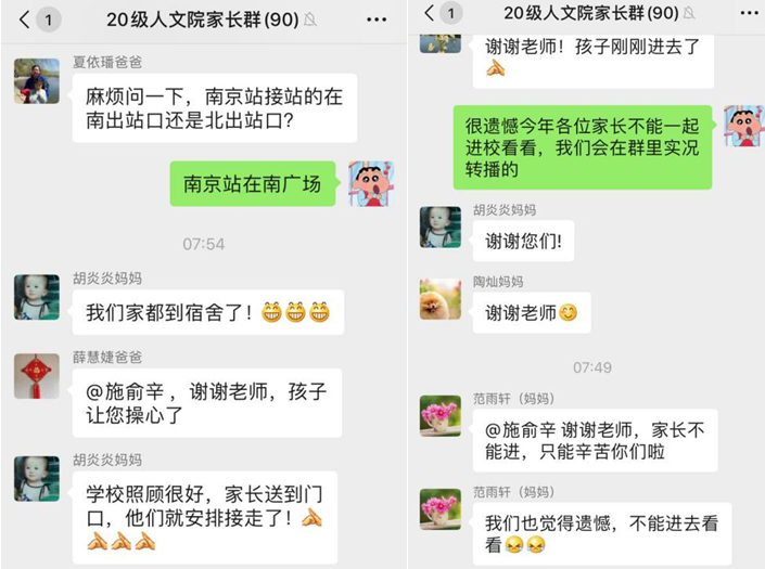 在常态化抗疫的特殊时期,今年的新生报到日,家长们只能把孩子送到学校门口,心里难免有些许遗憾。但贴心的迎新志愿者们早已在各个校区入口做好了充足的准备,为新生入学保驾护航。志愿者为每一个加入人文学院大家庭的新同学介绍校园、搬运行李,关心照顾,无微不至。家长们纷纷表示,学校和学院地每一个举措都蕴含着暖暖的真情。