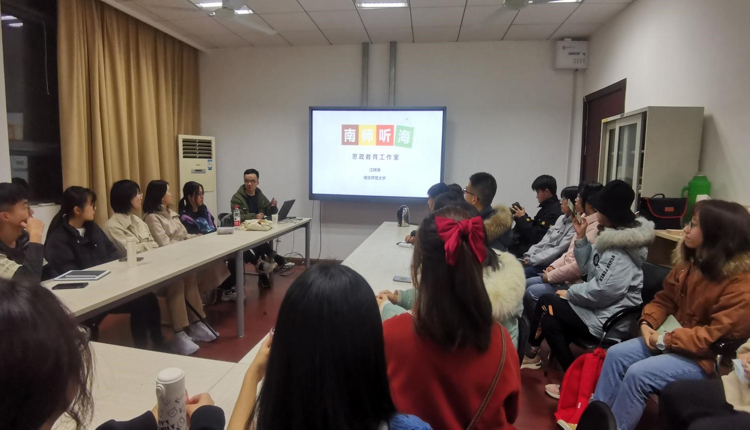 12月3日晚,第九期“人文青年说”优秀院友分享会成功举办,黄色导航 邀请到优秀毕业生沈晓海进行经验分享。沈晓海是人文学院2013级硕士,南京师范大学团委创新创业部部长,创办“南师听海”思政教育工作室,获得过南京师范大学辅导员职业能力大赛一等奖等校级及以上荣誉30余项。此次分享会,沈晓海围绕自己丰富的工作经验,就辅导员的工作心得以及自己运营“南师听海”思政教育工作室的经历展开分享。辅导员聂小芳以及人文学院二十余名本科生参与了此次的分享会。