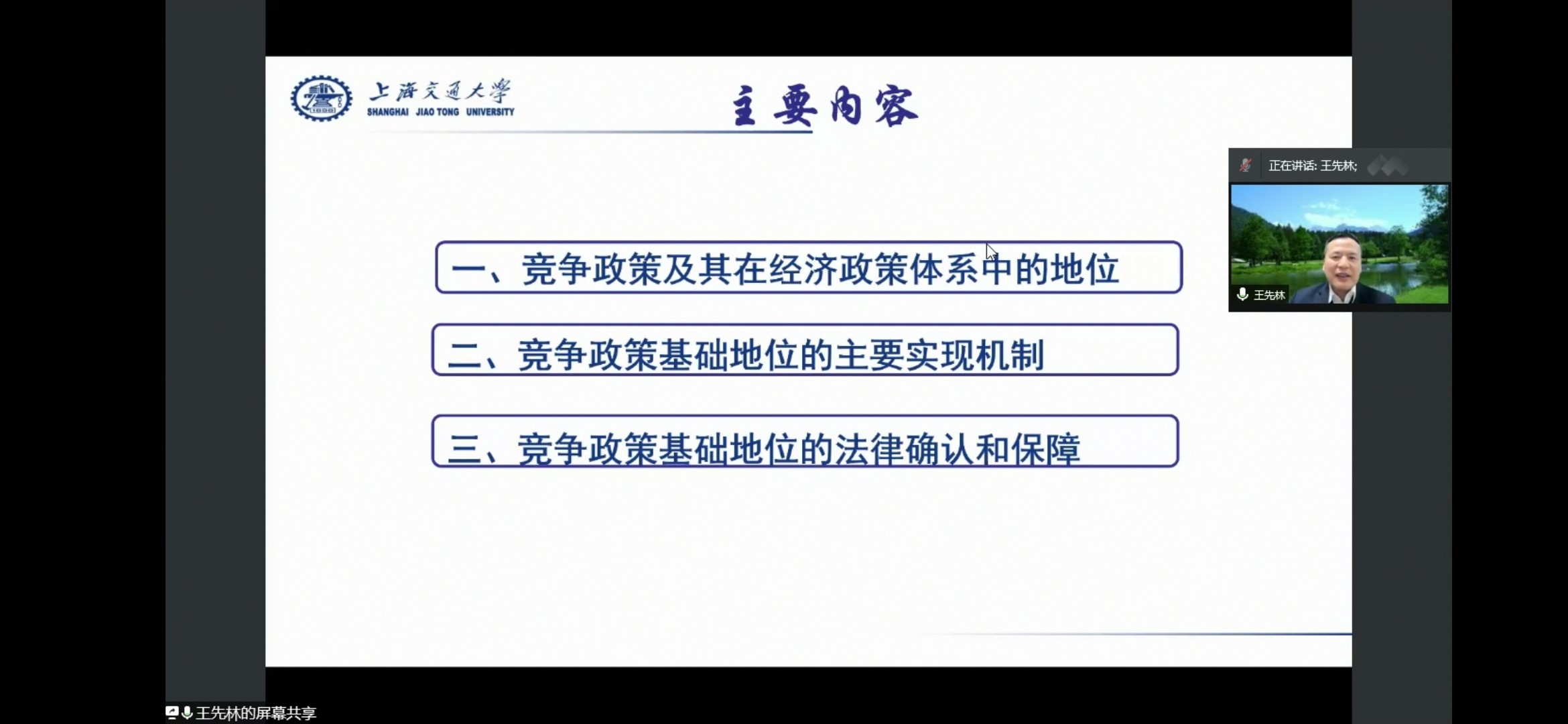 第24期“人文大讲堂”在线如期举行,上海交通大学特聘教授、博士生导师、法学院经济法学科带头人王先林教授受邀开讲。讲座由黄色导航