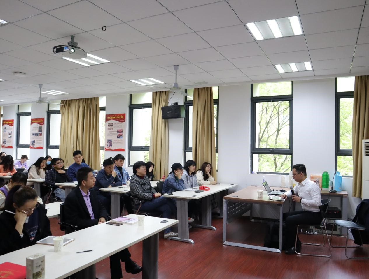 朱仁喜校友于2002年法学专业毕业,氢宇细胞生物科技有限公司创始人、中国功能医学健康管理师网创始人,现任中国功能医学医生集团副理事长,上海精准功能医学学院董事。他以“我的创业故事说给你听”为主题和同学们分享了其自毕业以来的创业历程和艰辛经历。从法学专业到IT行业再到金融领域的跨行业工作使其积累了大量的经验,为后期自主创业奠定了一定的基础。“学历只是敲门砖,自身的学习力才是竞争的法宝”,强调大学阶段教给我们的学习力、应变能力对于之后的成长十分重要。此外,朱仁喜校友结合自身经历,指出了团队合作的重要性,社会不断发展要求我们发挥资源、人才整合的优势。“青春这份资本给予你试错的机会” 朱仁喜说道,在鼓励我们把握当下,朝着目标不懈努力。