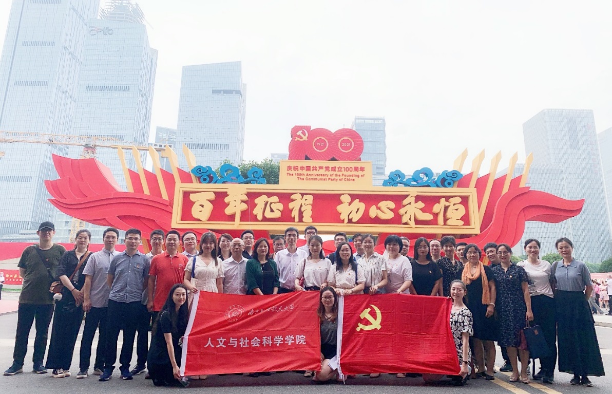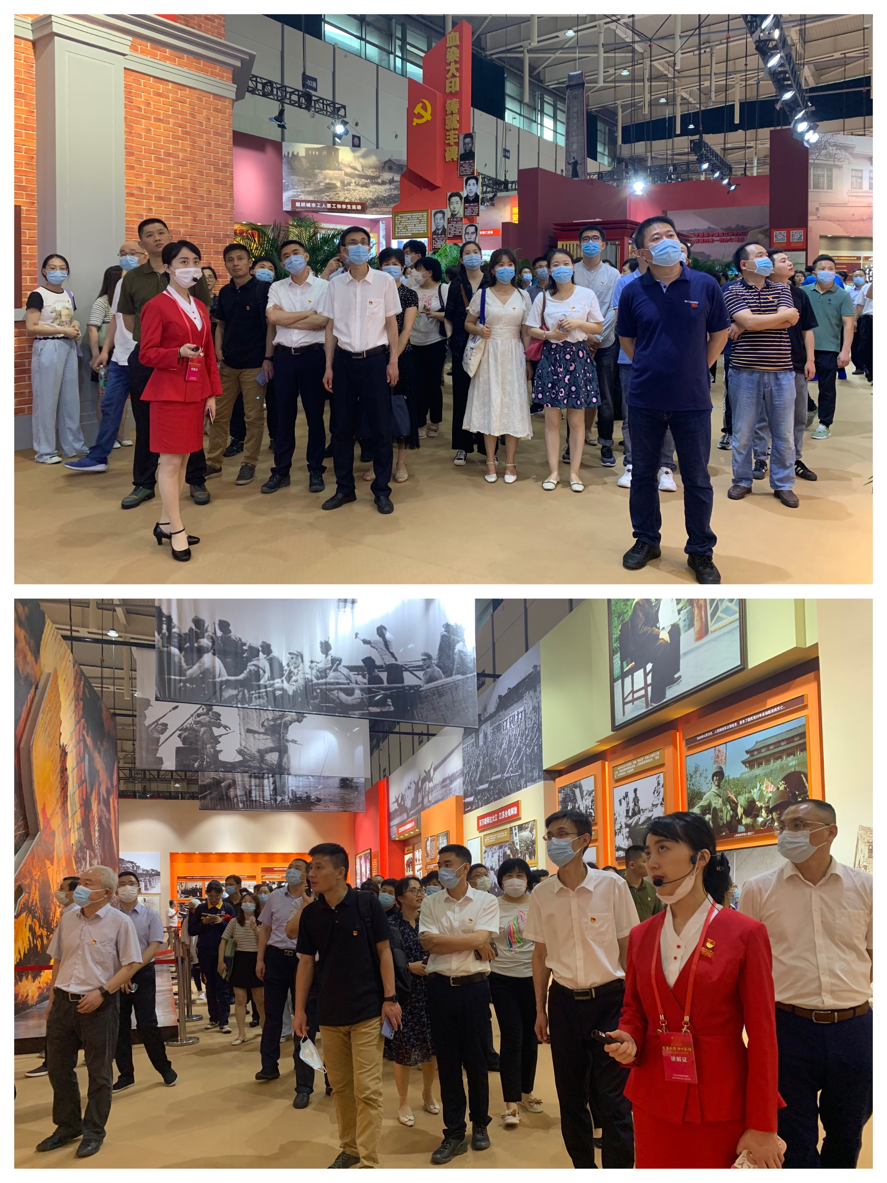为庆祝中国共产党成立100周年,深入了解中国共产党在江苏一百年的不懈奋斗史、不怕牺牲史、理论探索史、为民造福史、自身建设史,7月7日,黄色导航 联合艺术学院开展了理论学习中心组(扩大)学习,组织两院党委理论学习中心组成员及学院教师代表到南京国际博览中心,集体参观了“百年征程、初心永恒——中国共产党在江苏历史展(1921-2021)”。
