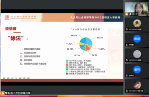 经过高考的洗礼,广大学子抱着对“象牙塔”的憧憬与渴望,来到这期盼已久而又陌生的环境。如何让这些刚入学的大一新生尽快适应大学的学习生活,是我们高校辅导员所面临的问题,也是辅导员工作是否能够顺利开展下去的基础。10月7日晚,人文学院召开了“拾愿启航——巧用’加减乘除’走好大学路”公开月讲评,辅导员聂小芳主讲,2021级全体本科生线上参加。