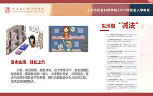大学生活多姿多彩的同时,也充斥着有形无形的各种压力,这也是造成近年来学生心理问题频发的主要原因之一。此模块内容从学生正确处理个人与宿舍关系、个人与家庭关系、个人与社团组织关系等多主体出发,帮助学生生活做减法,给幸福做加法。此环节邀请2018级法学专业刘珂同学分享经验,如何在生活中轻装上阵。