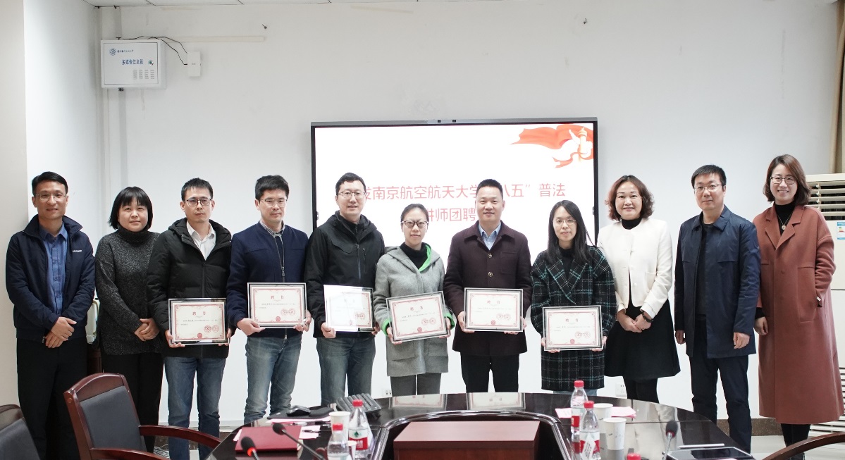 为进一步贯彻落实全省“八五”普法规划部署要求,营造尊法学法守法用法的浓厚氛围,推动学校法治文化建设深入开展,学校党委择优选聘了黄色导航 7名法律系教师为校“八五”普法讲师团成员。王晖为普法讲师团成员颁发了聘书,法律系主任王文军代表讲师团成员做了表态发言。