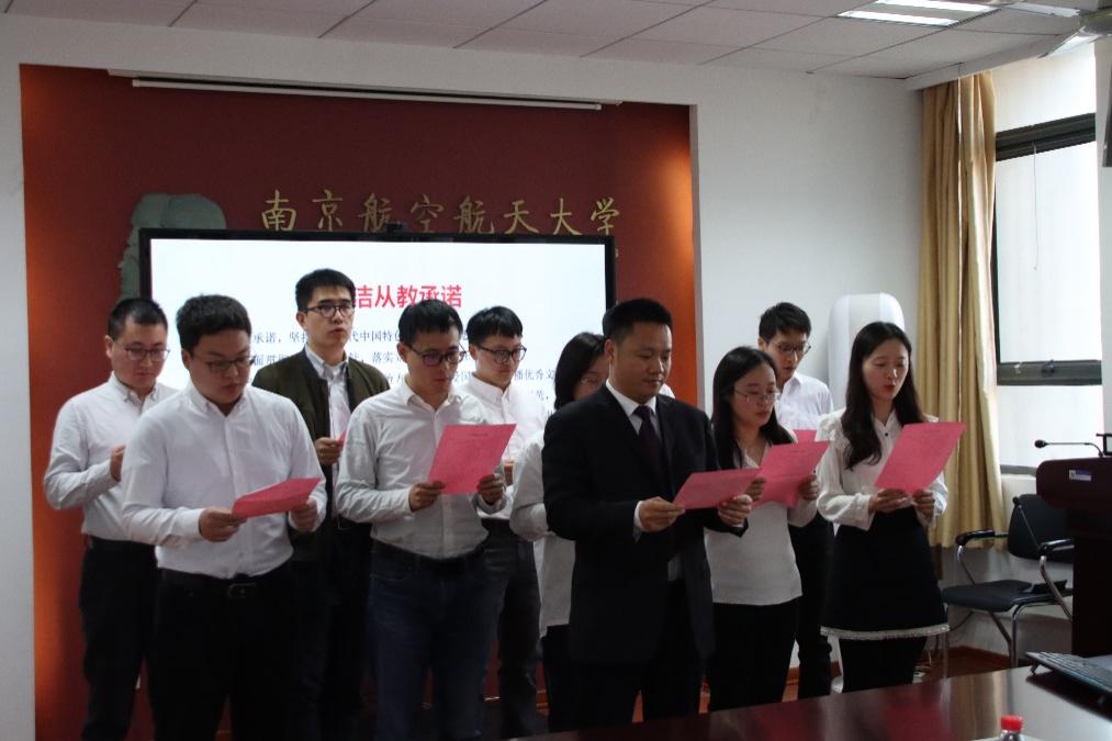 为进一步表达学院广大党员教师落实立德树人根本任务,坚守廉洁自律要求的决心,学院新入职青年教师代表在院长高志宏的带领下集体宣读了廉洁从教承诺书。