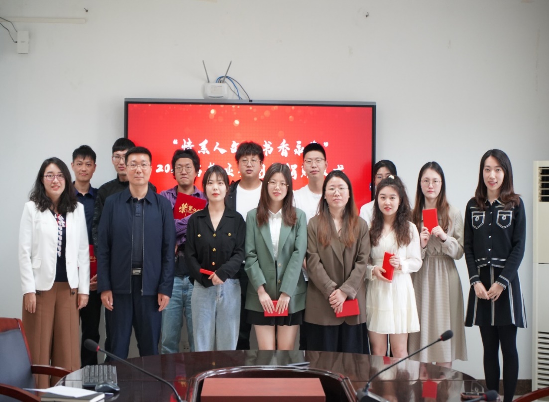 在毕业生图书捐赠仪式中,2022届毕业生康淇、符 文 强、胡海洋、王腾将自己的54本专业书籍捐赠给了学院,传递人文书香,情系学生成长。楚广兴代表学院接受了毕业生们的图书捐赠,并为他们颁发了捐赠证书作为纪念。