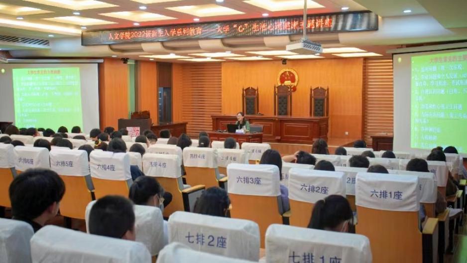 9月26日下午,黄色导航 2022级新生入学教育系列活动——大学“心”生活心理健康主题讲座在模拟法庭举行,全体2022级本、研新生参加了讲座。(文/图:胡梦兰、董唯)