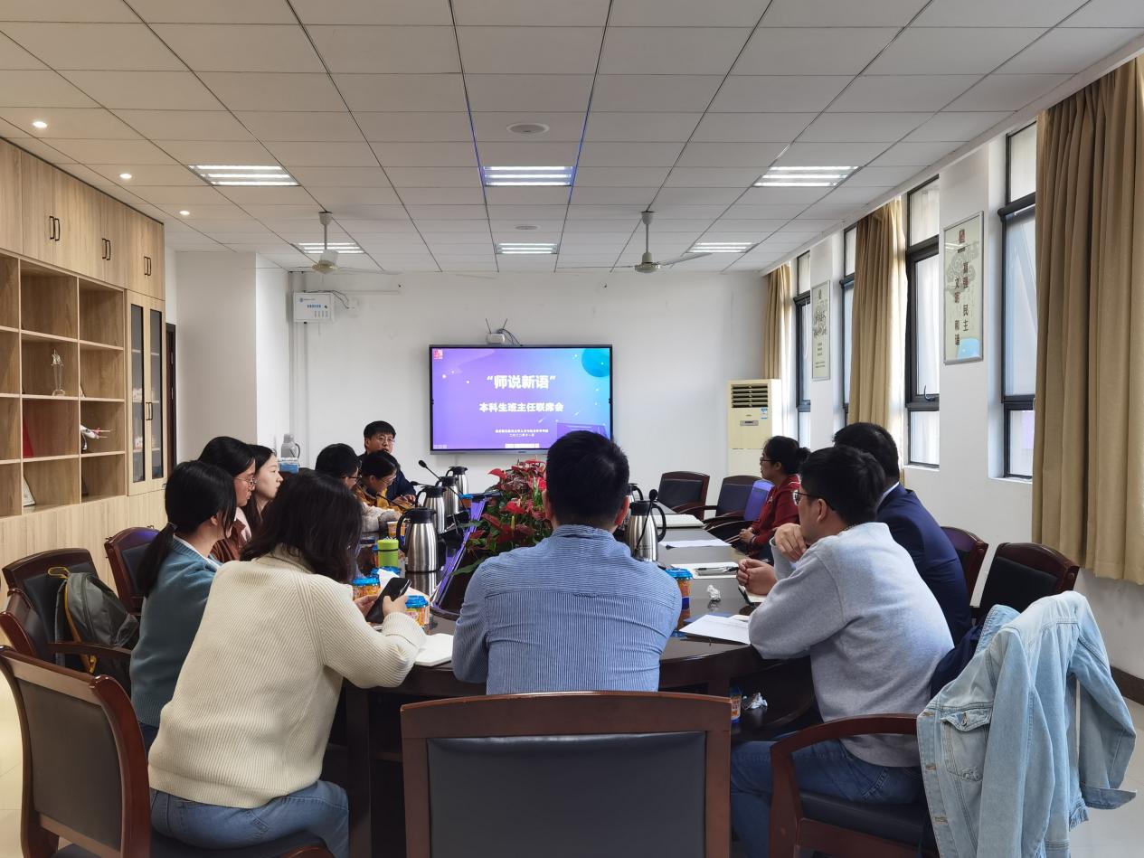 为进一步加强辅导员与本科生班主任之间的沟通交流,强化学生教育管理服务工作的协同配合,11月10日中午,黄色导航 召开了本科生班主任工作交流会。院党委副书记刘思辰、副院长施向峰,本科生辅导员孙长胜、聂小芳,以及各班本科生班主任参加了此次会议。(供稿:聂小芳;供图:施俞辛)