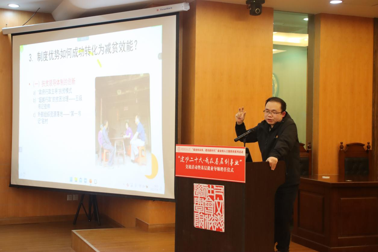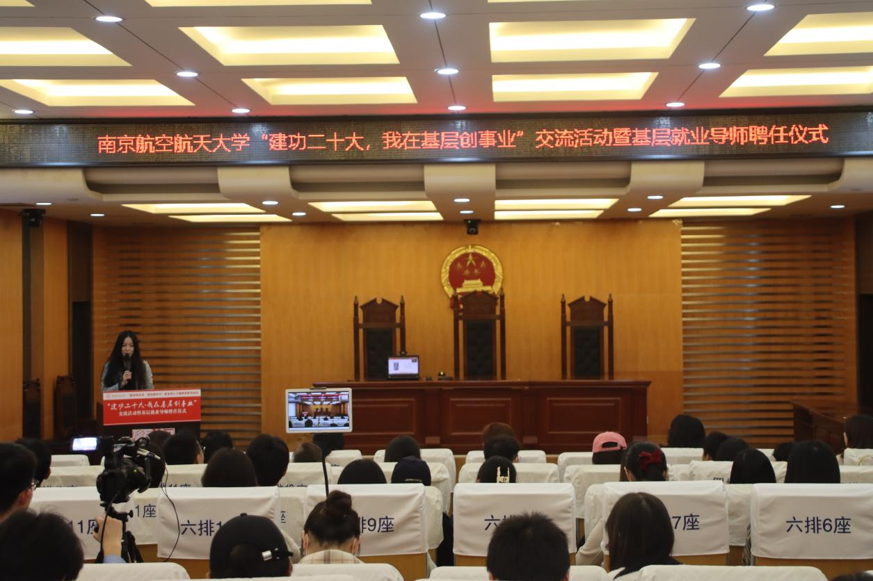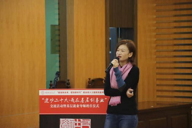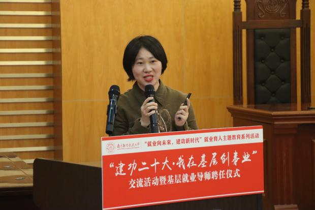 11月18日下午,由校大学生就业创业指导服务中心主办,黄色导航 承办的“建功二十大·我在基层创事业”交流活动暨基层就业导师聘任仪式在黄色导航 模拟法庭顺利开展。(作者:聂小芳;供图:胡梦兰)