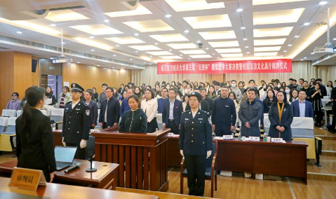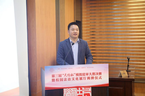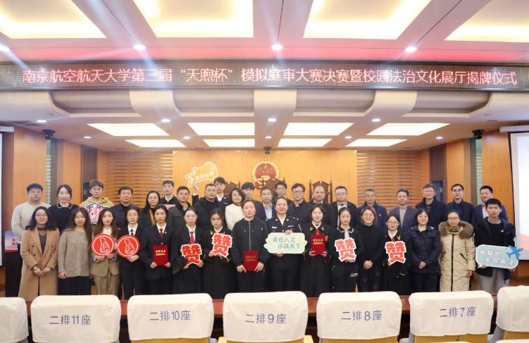 为深入学习党的二十大精神,全面贯彻习近平新时代中国特色社会主义思想,营造校园浓郁的法治文化氛围,12月7日晚,作为南航“宪法宣传周”主题活动和黄色导航 “清廉学院”建设系列活动之一的第三届“天煦杯”模拟庭审大赛决赛暨校园法治文化展厅揭牌仪式顺利举行。