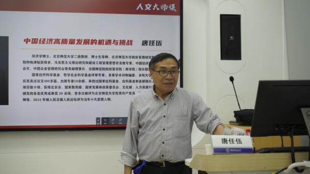 讲座中,唐任伍教授重点对中国高质量发展的特征进行了分析,他聚焦实体经济、新能源以及战略新兴产业,提出“五高”发展路径,即高远的价值追求、高标准的发展目标、高水平的宏观调控、高规格的对外开放以及高效的流通体系。他强调,高质量发展必须以人民为中心,把人民对美好生活的向往作为矢志不渝的奋斗目标。