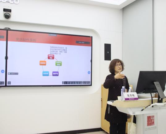张月铭用“择业前三问”开启讲座,向同学们讲解了在正式制作简历前,应如何确定自己的职业方向和岗位。她从简历的“个人信息”“教育背景”“实习实践”“荣誉奖励”“自我评价”“个人技能”等六大内容展开讲述,帮助同学们梳理了简历撰写的关键要素和注意事项。