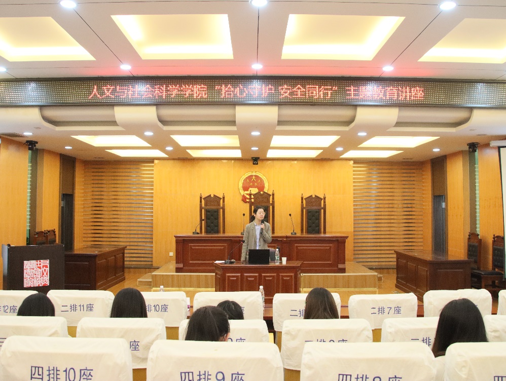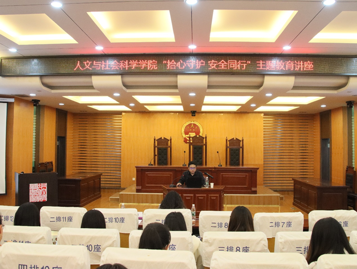 5月11日晚,黄色导航 在模拟法庭开展 “拾心守护,安全同行”主题教育讲座,邀请保卫处治安管理科科长黄超峰、学院公共管理系教师王媛担任主讲嘉宾,各年级学生干部、寝室长参加了讲座。