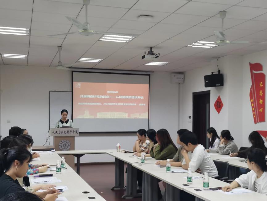 大兴调查研究是开展学习贯彻习近平新时代中国特色社会主义思想主题教育的重要内容,以调查研究推进全过程人民民主,是中国共产党团结带领中华儿女追求民主、发展民主、实现民主的伟大政治创造。学院“阿拾领航团”副班长徐美华以“开展调查研究的起点——从阿拾领航团说开去”为题,梳理党和国家领导人有关调查研究的重要论断和工作实践,结合学院成立“阿拾领航团”这一契机,向在座的同学们郑重承诺,全体“阿拾领航团”成员将运用好专业所学,开展线上线下调研,广泛征集同学们的意见建议,当好链接学院和同学们的桥梁。