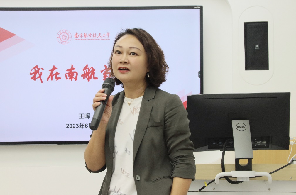 王晖以《我在南航当老师》为题,从师德师风应然状态、实然状态和必然状态三个角度对高校师德师风建设进行了分析解读。她首先通过与老师们一起重温校庆70周年宣传视频、讲述老一辈南航人育人故事的方式,让全院教师深切感受到南航文化中坚守不变的育人初心。