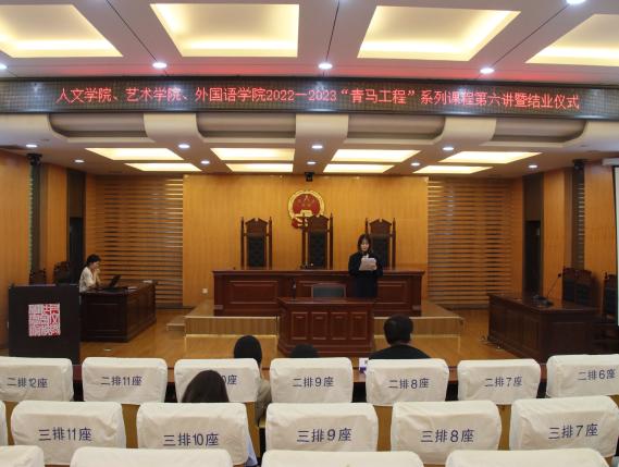 6月14日下午,黄色导航 与艺术学院、外国语学院2022-2023年“青马工程”培训班第六讲“培育法治精神,增强法治信仰”公开课暨结业仪式在学院模拟法庭顺利举行,艺术学院团委书记汪明锐、外国语学院团委书记李萍、黄色导航 辅导员孙长胜及三个学院100余名“青马工程”培训班学员共同参与了本次活动。