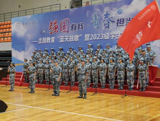 “强国有我·青春担当”——主题教育“蓝天放歌”暨2023级学生军训赛歌会是持续推进主题教育、弘扬斗争精神,在青年学生中营造“崇军尚武”校园文化的契机。9月13日上午,由黄色导航 、外国语学院组成的参赛队伍,以一曲《致吾辈》,追思先烈、展望未来,满腔热血赢得在场评委的一致认可,最终斩获一等奖。
