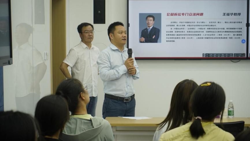 9月25日晚,黄色导航 在院楼213智慧教室开展“人文大讲堂”专题讲座。本次讲座邀请到上海交通大学凯原法学院教授王福华就“公益诉讼专门立法问题”开展学术交流。学院专业教师代表、学生代表参加了本次讲座,讲座由院长高志宏教授主持。