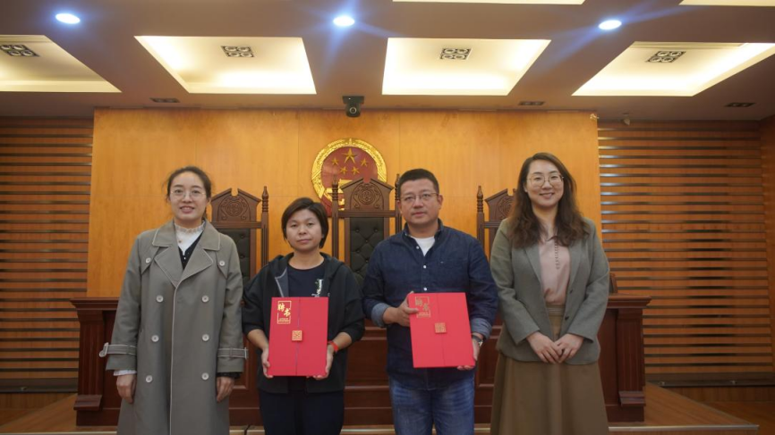 刘思辰、王宇宁为鲍聪、沈霞颁发“职业生涯规划指导专家”聘书。