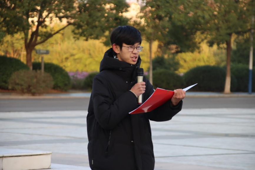 2021级本科生巫瑞奇代表院团委学生会向全院同学发起学风建设倡议,号召同学们明确学习目标、端正学习态度、恪守行为规范、注重学习方法,同塑优良学风,共筑文明课堂。