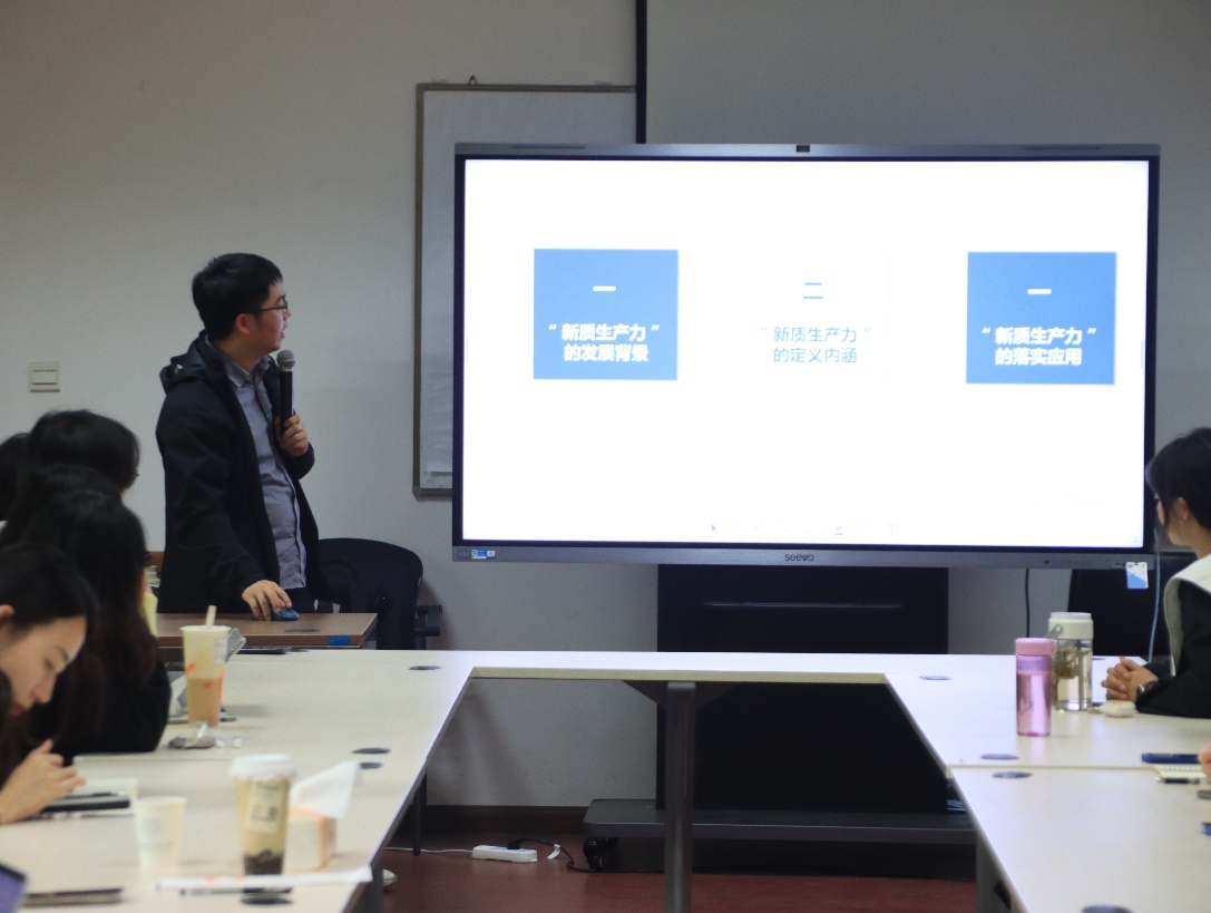 丰超从“新质生产力的发展背景”、“新质生产力的定义内涵”以及“新质生产力的落实应用”三个方面为同学们深刻解读了会议第一个主题——“新质生产力”,强调新质生产力是创新驱动发展战略的核心要素,关乎国家长远竞争力和高质量发展。