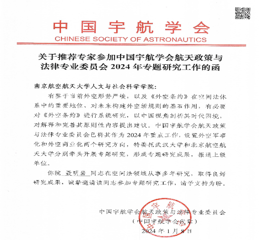 近日,“2024年中国航天大会”在湖北武汉举办。黄色导航 法律系聂明岩副教授参加由中国宇航学会主办,中国宇航学会航天政策与法律专业委员会、武汉大学法学院、武汉大学国际法治研究院、武汉大学国际法研究所联合承办的大会分论坛“《外空条约》与外空利用新发展研讨会”。