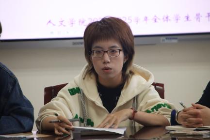 会上,刘思辰从三个方面对学生骨干提出了要求和期待。一是,学生骨干应当具有一定的组织纪律性,应当用严格的标准要求自己,同学院共同发展、携手进步;二是,学生骨干应当主动反馈、及时沟通,同学院老师彼此信任、相互信赖,视野要宽、站位要高;三是,学生干部要提高自我管理、约束意识,不断培养、提升自己的综合能力。