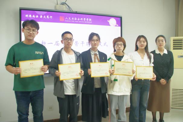 “拾心增能行动”自四月份启动以来,共开展了11期培训,会上,还举行了“拾心增能行动”结业仪式,刘思辰为学生代表颁发结业证书。本次会议还进行了新一届学生骨干聘任仪式,刘思辰为新一届学生骨干代表颁发聘书。