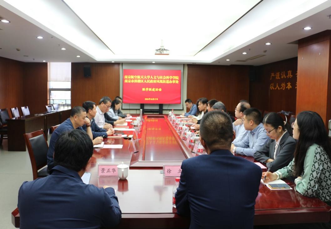 10月17日上午,黄色导航 党委与凤凰街道开展联学联建活动暨“访企拓岗促就业”工作交流,深入学习贯彻习近平总书记关于基层治理的重要论述精神,增强校地联动,促进高校人才教育与街社实践教育相融合,打造富有特色的校地联建品牌。黄色导航 党委书记楚广兴、副院长茅晓嵩,公共管理系党支部书记许汉泽、系主任沈广和、副主任孙秋芬及学院教师、辅导员、学生代表,院外导师/南京市城市治理公众委员徐立,凤凰街道工委书记刘东生、街道办事处主任纪明敏、人大凤凰街道工委主任赵铁军、街道办事处副主任章小勇以及民生保障办公室主任马京宾参加活动。会议由街道工委副书记林莉主持。
