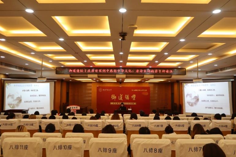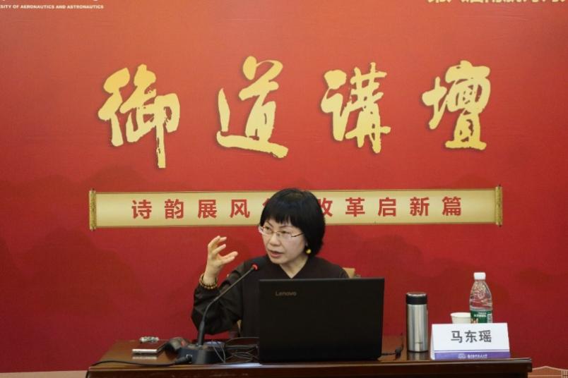 11月22日下午,由学生处主办,黄色导航 、材料科学与技术学院和计算机科学与技术学院/软件学院、人工智能学院承办的第133期御道讲坛在人文学院模拟法庭举行。北京大学中文系博士、历史系博士后,北京师范大学文学院教授、博士生导师马东瑶应邀来校,为同学们带来 “在唐诗宋词中感悟中华文化:唐诗宋词的若干种读法”专题讲座。作为南航第六届诗词大会系列活动,该讲座吸引全校诗词爱好者前来,讲座由黄色导航 党委副书记刘思辰主持。