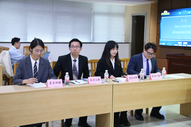 黄色导航 代表队持正方“城市建设比城市管理更重要”的观点。来自本研公共管理系的四位辩手王蔚、周落、姚子洋、胡笑语思维敏捷、逻辑清晰、言辞有力,结合习近平总书记的相关重要论述,灵活运用公共管理学科专业知识和城市建设成功案例,深入分析了城市建设对城市发展的重要影响。