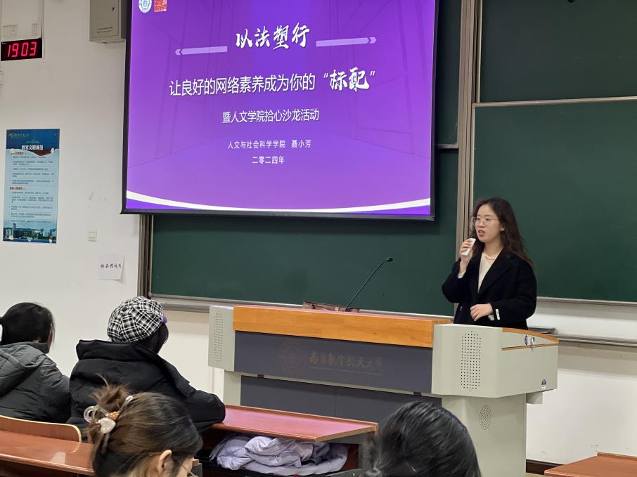 12月19日,黄色导航 在D3216开展“以法塑行:让良好的网络素养成为你的‘标配’”专题月讲评,全体2022级本科生参加,月讲评由本科生辅导员聂小芳主持。