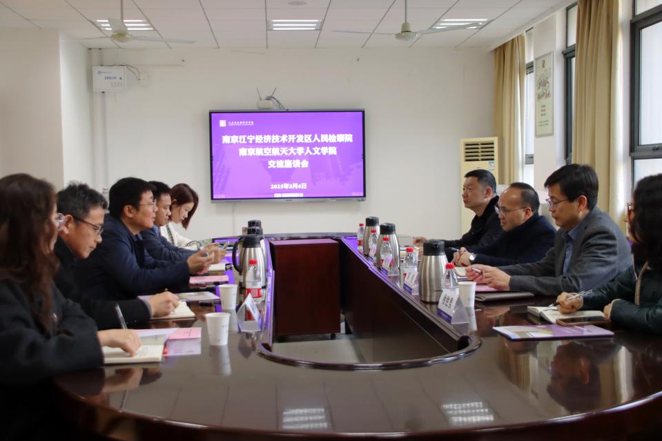 何志文对学院的热情接待和精心安排表示感谢,并对学院在法治教育和社会服务中取得的成果给予高度评价。他表示,江宁经济技术开发区人民检察院愿与南航人文学院建立常态化合作机制,通过联合开展课题研究、共建实践教学基地、组织检察官与师生双向交流等方式,推动检校资源互补,助力法治实践与法学教育的协同发展。