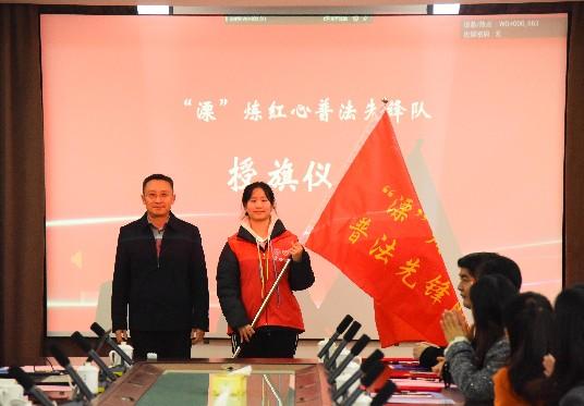为贯彻落实国家“八五”普法规划,推进溧阳法治社会建设,搭建法学专业学生实习实践平台,人文学院和溧阳市司法局联合成立“溧”炼红心普法先锋队,葛军伟为“溧”炼红心普法先锋队代表授旗。