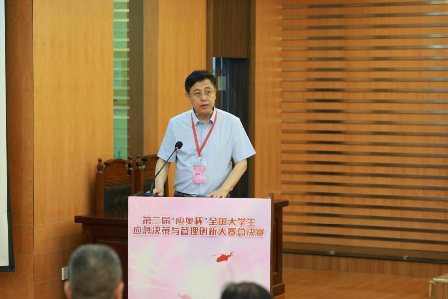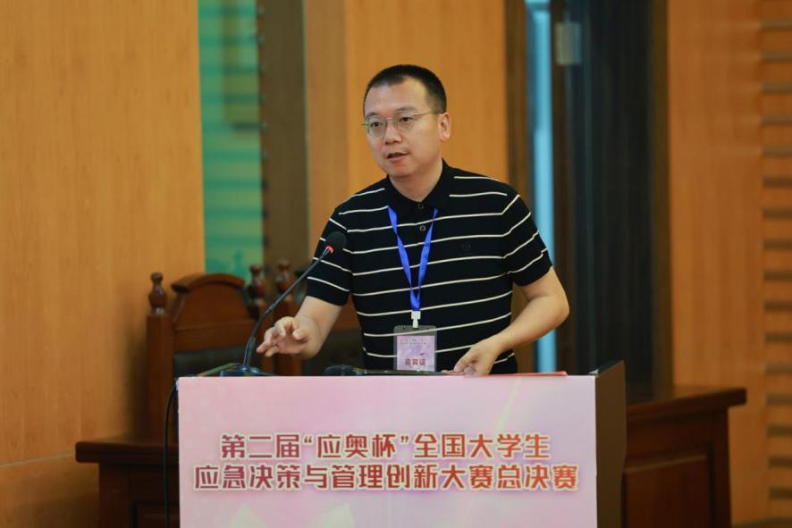 教务处副处长柯世堂教授致欢迎辞,他表示,本次大赛是贯彻习近平总书记关于应急管理重要论述的具体实践,为构建现代化应急管理体系培养创新人才。作为承办方,此次大赛为学校师生提供了与全国高校同行交流学习的宝贵机会,搭建了良好的合作桥梁,为新文科建设提供了新的发展动力。