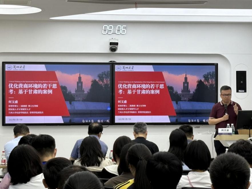 赛事期间,学院特邀何文盛教授和孙涛教授做客人文大师课。何教授以《优化营商环境的若干思考:基于甘肃的案例》为题,立足西部振兴战略,剖析甘肃在政策创新、政市关系协调中的区域治理实践,揭示欠发达地区优化营商环境的路径探索。孙教授以《科技赋能的超特大城市智慧服务与全域基层治理》为题,探讨了超特大城市的转型与治理、超特大城市的精细化管理、超特大城市的智慧化服务。