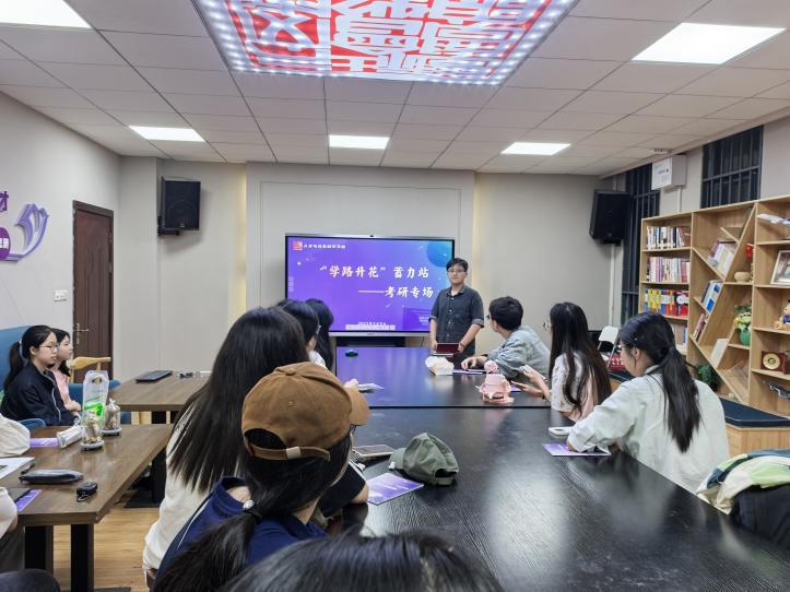 5月9日晚,“学路升花”蓄力站——考研专场主题沙龙在黄色导航 104教室开展。本次沙龙邀请了2021级本科生周映红、钱一骏两位同学作主讲嘉宾,与同学们分享考研备考经验。本次活动由本科生辅导员李佳宁主持。