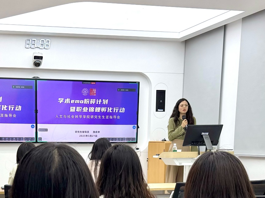 研究生辅导员施俞辛通过毕业、就业的可视化时间轴,提醒全体研究生务必注意研途的关键时间节点。基于近三年的毕业生就业数据,她系统梳理了研究生的就业路径图谱,强调应立足个人发展进行精准定位,及时从学校就业信息平台、重点行业双选会、校企合作项目等核心信息渠道,多方获取就业信息,选择适合自己的岗位。