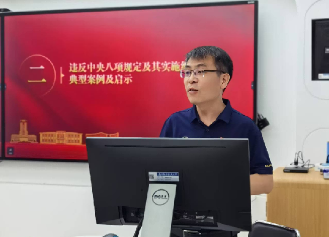 纪委副书记、监察处处长、巡察办主任王国军讲授了题为《深入贯彻中央八项规定精神 以优良作风护航世界一流大学建设》的专题党课。他从深学细悟习近平总书记关于深入贯彻中央八项规定精神的重要论述、违反中央八项规定及其实施细则精神典型案例及启示、锻造作风优良的纪检监察铁军三个方面讲授党课。党课围绕六个鲜明提出,阐述了习近平总书记关于深入贯彻中央八项规定精神的重要论述,以及实施中央八项规定以来取得的伟大成就、带来的重大改变;通过警示案例的讲述,引导党员坚持以案为鉴、警钟长鸣,把纪律规矩内化为思想自觉和行动自觉;从作风是什么、建设什么样的作风以及作风怎么建设,提出了学校纪检监察干部队伍作风建设的目标和路径,要求大家严格落实“公、实、勤、俭、好”的理念,用实际行动践行纪检监察部门“忠诚担当、实事求是、敢于斗争、雷厉风行”的作风,以作风建设的新成效为世界一流大学建设清障护航。王国军还对在座的大学生党员就贯彻落实中央八项规定精神提出建议,希望他们严格要求自己,遵守校规校纪,带头勤奋学习,厉行勤俭节约,做好同学们的表率。
